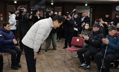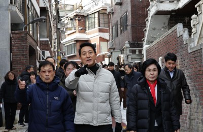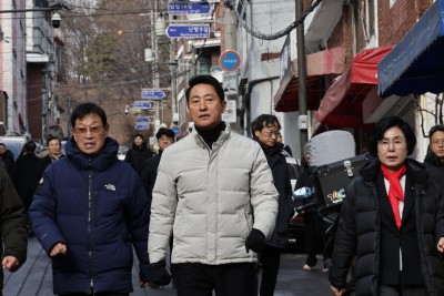 관악구 신림동 675 일대 재개발 현장 주민들에게 인사하는 오세훈 서울시장