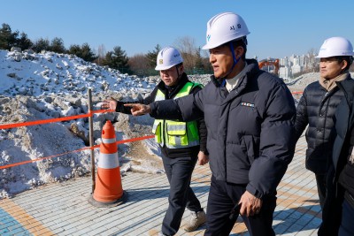 성수동 삼표레미콘 부지 찾아 브리핑 듣는 오세훈 서울시장