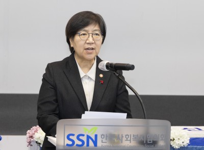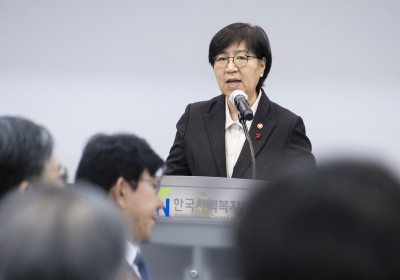 인사말하는 정은경 장관, 2026년 사회복지계 신년인사회