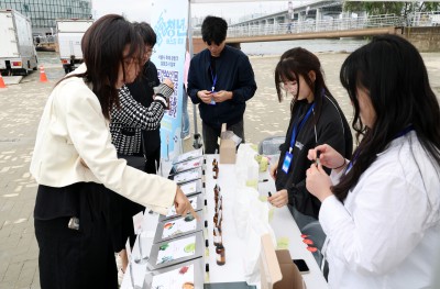 ‘제13회 온 가족 책 잔치’ 체험부스 둘러보는 정근식 서울시교육감