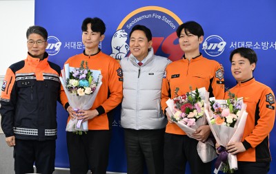 새해아침 서대문소방서 김정현 소방교 격려하는 오세훈 서울시장
