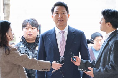 '여론 조사비 대납 의혹' 재판 출석하는 오세훈 서울시장
