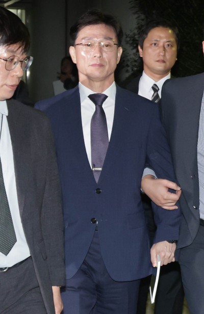 특검 수사관 보호속 이동하는 임성근 전 해병대 1사단장