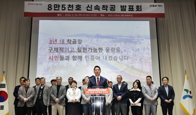 8만 5천호 신속착공 약속하며 기념촬영하는 오세훈 서울시장