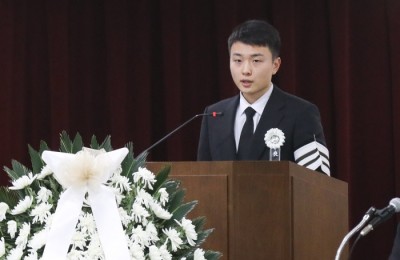 [사진] 추모사하는 고(故) 윤한덕 센터장 장남 윤형찬 군