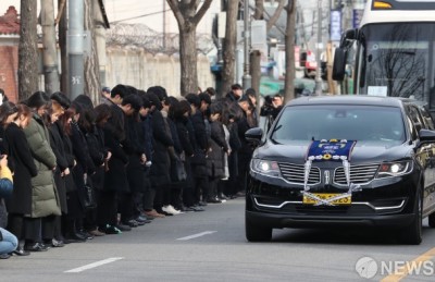 [사진] 동료들의 배웅 받으며 떠나는 고(故) 윤한덕 중앙응급의료센터장 운구차