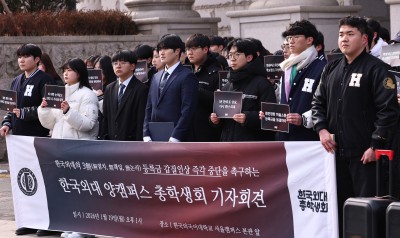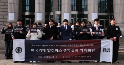 등록금 인상안에 항의 기자회견하는 한국외국어대학교 학생들