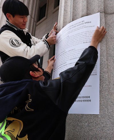 한국외국어대학교 총학생회 학생들이 대자보 부착하는 이유는?