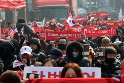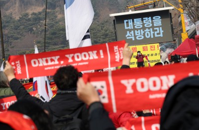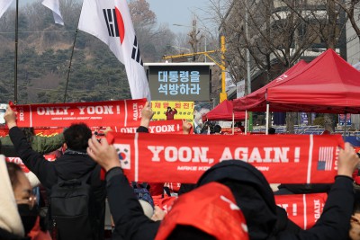 윤석열 '체포방해' 첫 선고...석방 촉구하는 지지자들
