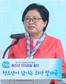 [사진] 정현백 여가부 장관, 평화통일체험활동 발대식 축사