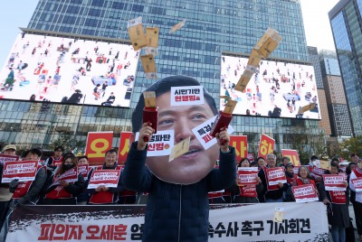 김건희 특검 앞에서 열린 오세훈 엄정, 신속, 구속수사 촉구 기자회견