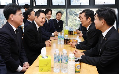 장동혁 국민의힘 대표와 대화 나누는 정청래 더불어민주당 대표