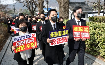 '사법파괴 3법' 철회 촉구하며 행진하는 장동혁-송언석