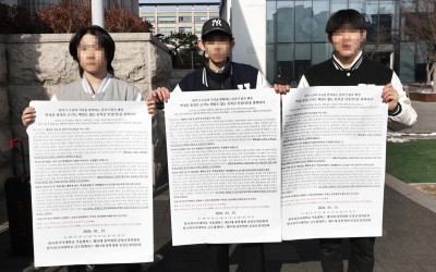 등록금 인상에 반대 대자보 보여주는 한국외국어대학교 총학생회 학생들