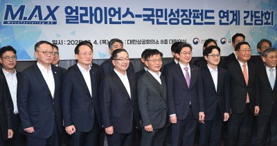 기념촬영하는 ‘M.AX 얼라이언스–국민성장펀드 연계 간담회’ 참석자들