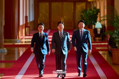 국무회의 향하는 이재명 대통령 - 김민석 국무총리 - 강훈식 비서실장