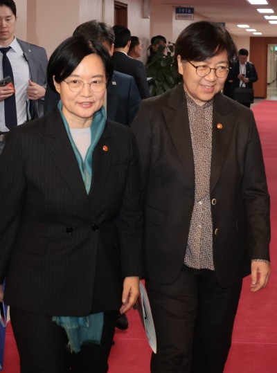 국무회의 참석하는 한성숙 중소벤처기업부 장관 과 정은경 보건복지부 장관