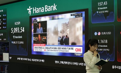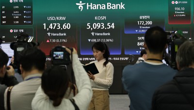 코스피 5000선 위협속 CNN 방송되는 하나은행 딜링룸