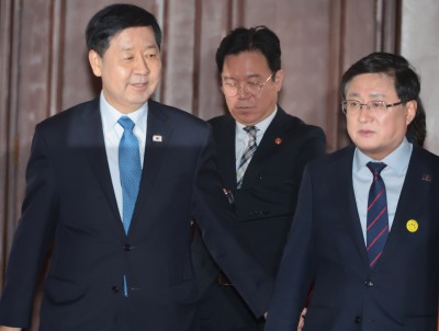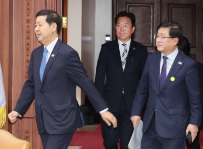 개정 노동조합법 시행 관련 관계장관회의 참석하는 구윤철- 김영훈-김성환