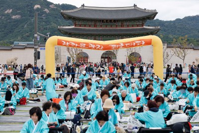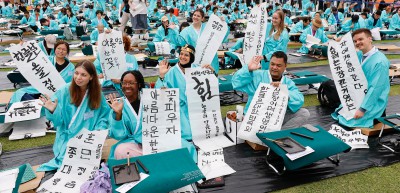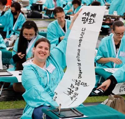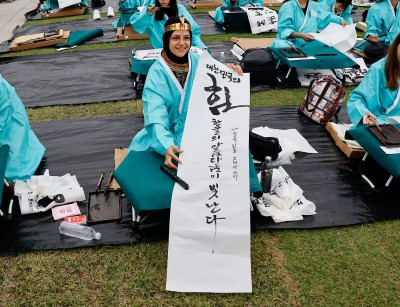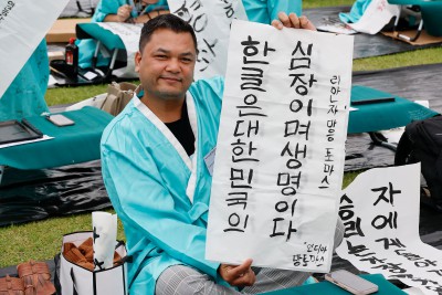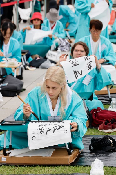한글창제 579주년 기념 광화문광장 휘호대회 참가한 외국인들