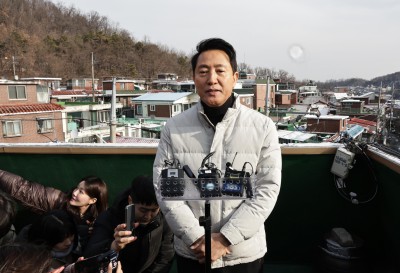 신림동 675 일대 재개발 현장에서 메세지 발표하는 오세훈 서울시장