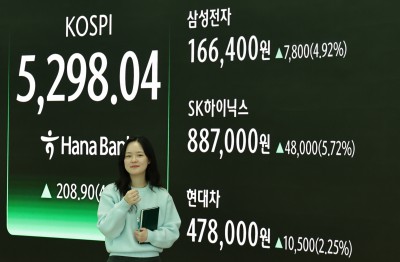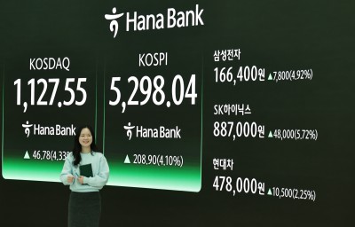 코스피 4.10% 상승하며 삼성전자 166.400원 마감