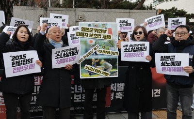 일본군 위안부 피해자 보호법 개정 촉구 외교부 앞 시위