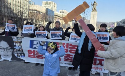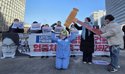 전국민중행동 회원들의 '국정농단 김건희 엄중처벌 촉구' 퍼포먼스