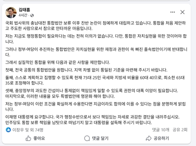 "전국 공통 기준 마련하라"...김태흠 충남지사, 통합법 보완 촉구