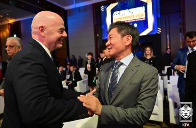 정몽규 축구협회장, FIFA 상업·마케팅 자문위 부위원장에 임명 [서울=뉴스핌] 손지호 기자 = 정몽규 대한축구협회장이 국제축구연맹(FIFA) 상업·마케팅 자문(Commercial & Marketing Advisory) 위원회의 부위원장으로 임명됐다. 9일 대한축구협회에 따르면 FIFA는 7일 공문을 통해 정몽규 회장이 FIFA의 신설 상임위원회 중 하나인 상업·마케팅 자문위원회의 부위원장으로 선임됐다고 알렸다. 이번 결정은 지난 2일 스위스 취리히에서 열린 FIFA 평의회에서 이뤄졌다. 25-10-10 08:22