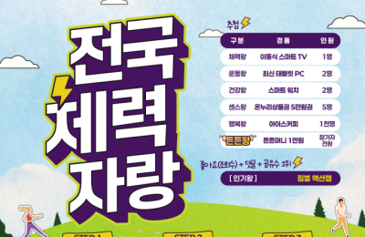 체육공단, 스포츠의 날 맞이 '국민체력100 전국 체력 자랑' 개최 [서울=뉴스핌] 손지호 기자 = 국민체육진흥공단은 문화체육관광부와 함께 10월 15일 제63회 스포츠의 날을 맞이해 '건강한 대한민국! 국민체력100 전국 체력 자랑'을 개최한다고 10일 밝혔다. 국민의 생활 속 체력 관리를 통한 건강 증진을 장려하기 위해 마련된 이번 행사는 온오프라인으로 진행된다. 먼저 19일까지 인스타그램을 통해 '전국 체력 자랑 챌린지'가 진행된다. 25-10-10 10:26