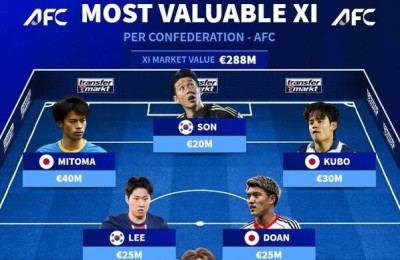 아시아축구 베스트11에 한국 3명... 일본 7명 뽑혀 대조 [서울=뉴스핌] 박상욱 기자 = 아시아축구 베스트11에 이름을 올린 한국 선수는 3명, 일본은 7명이나 선정돼 대조를 이뤘다. 축구 통계 전문 매체 트랜스퍼마크트는 16일(한국시간) "6개의 드림팀, 어느 대륙이 경기를 지배할까"라는 문구와 함께 각 대륙별 시장가치 기준 베스트11을 발표했다. 유럽과 남미, 아프리카, 북중미, 아시아, 오세아니아 등 6개 대륙별로 포지션당 최고 시장가치를 지닌 선수들로 구성된 명단이었다. 아시아 베스트11은 사실상 일본 대표팀에 가까웠다. 미토마 가오루(브라이튼·4000만 유로)를 비롯해 구보 다케후사(레알 소시에다드·3000만 유로), 도안 리츠(프랑크푸르트·2500만 유로), 사노 가이슈(마인츠&mi 25-10-17 15:04
